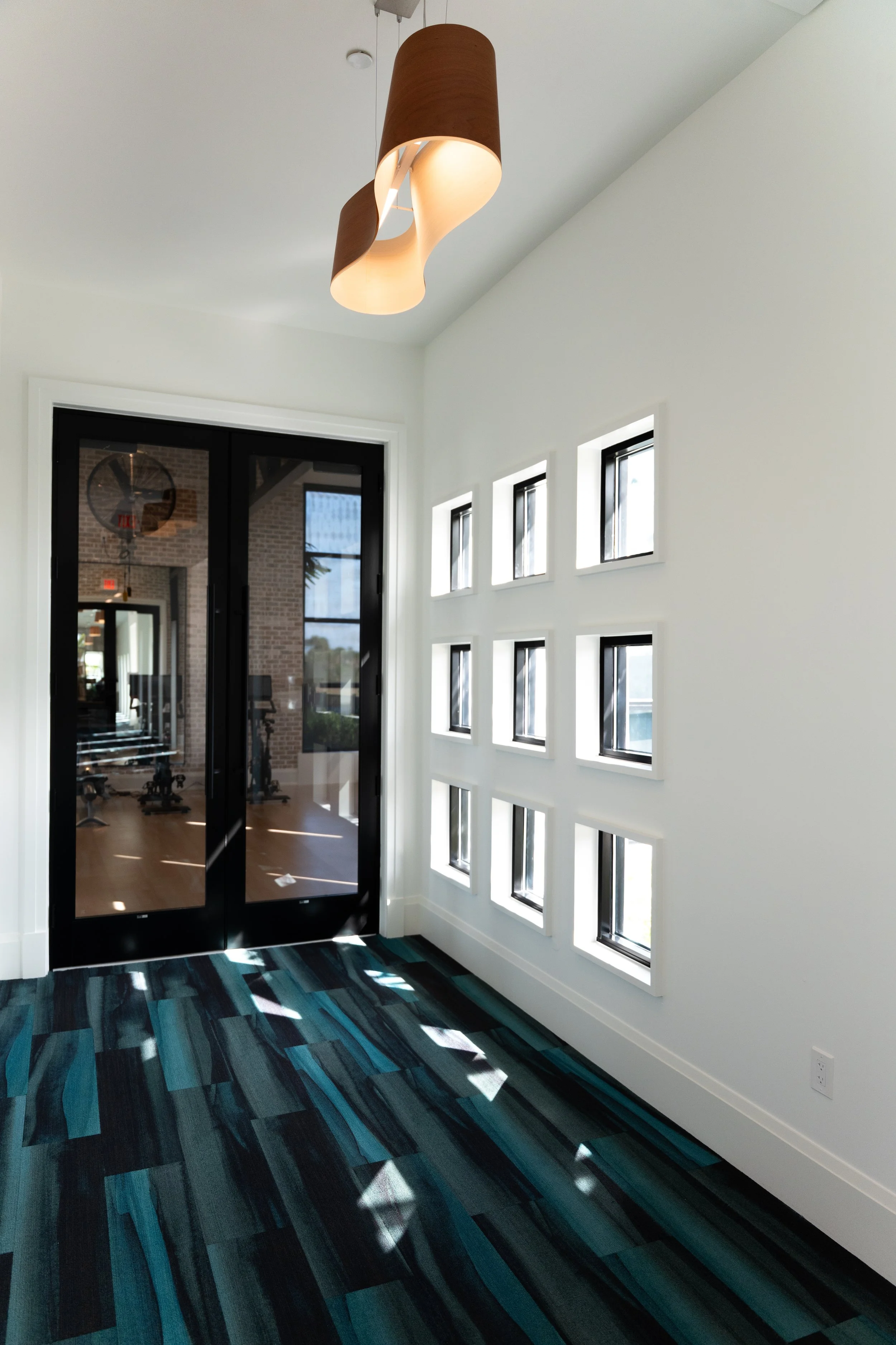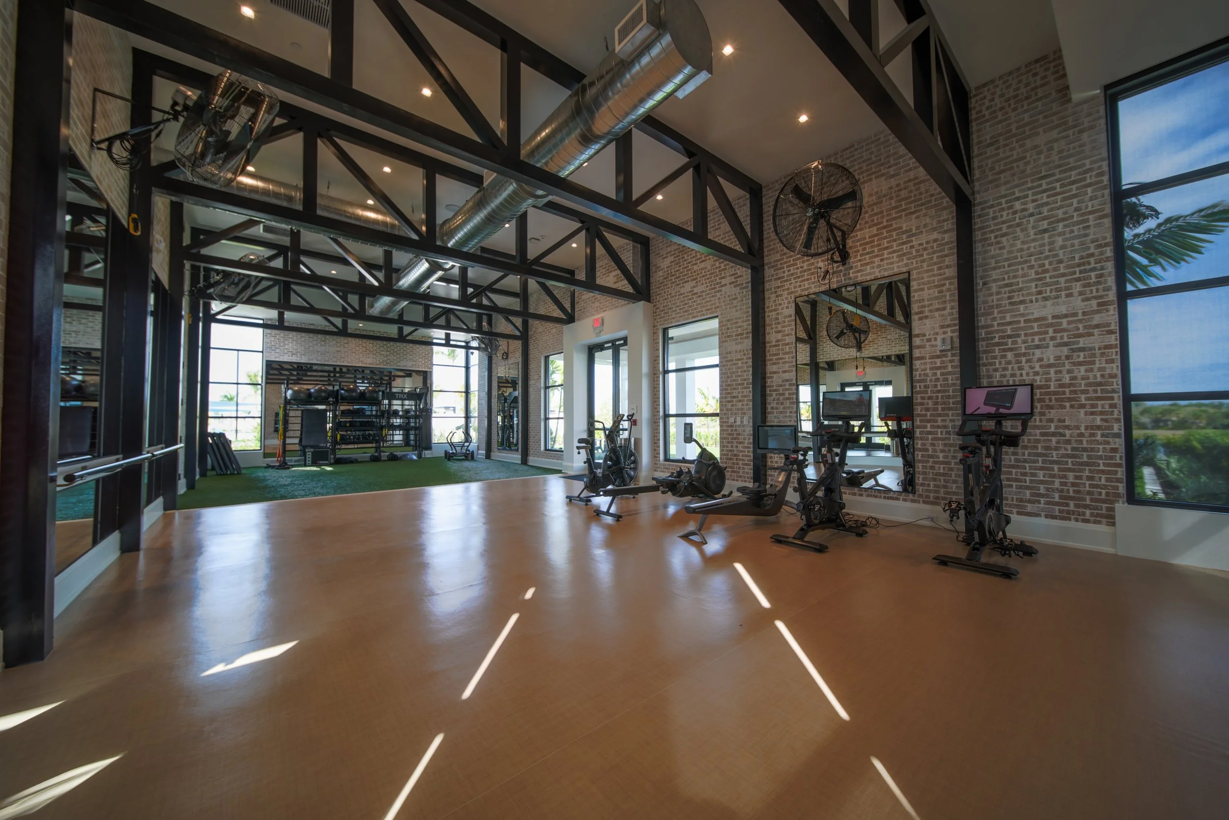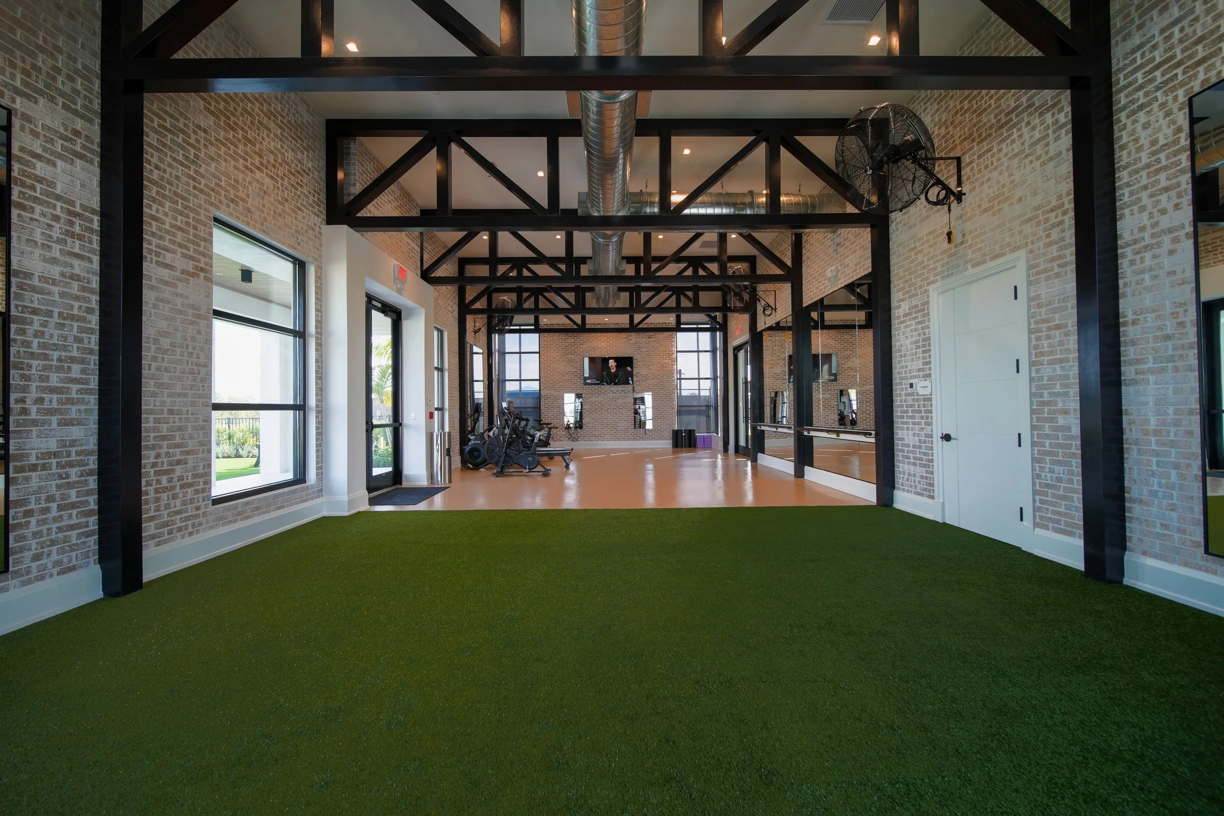 + Social: lobby and adjacent offices, grand hall, club room, restrooms, and coffee bar