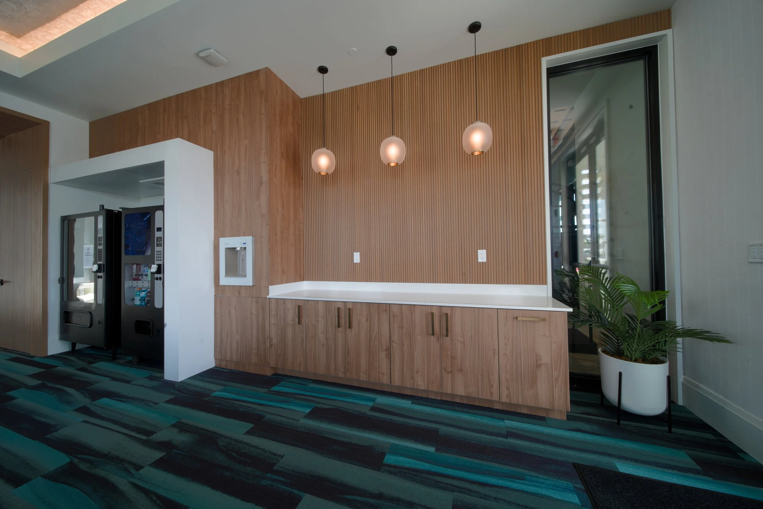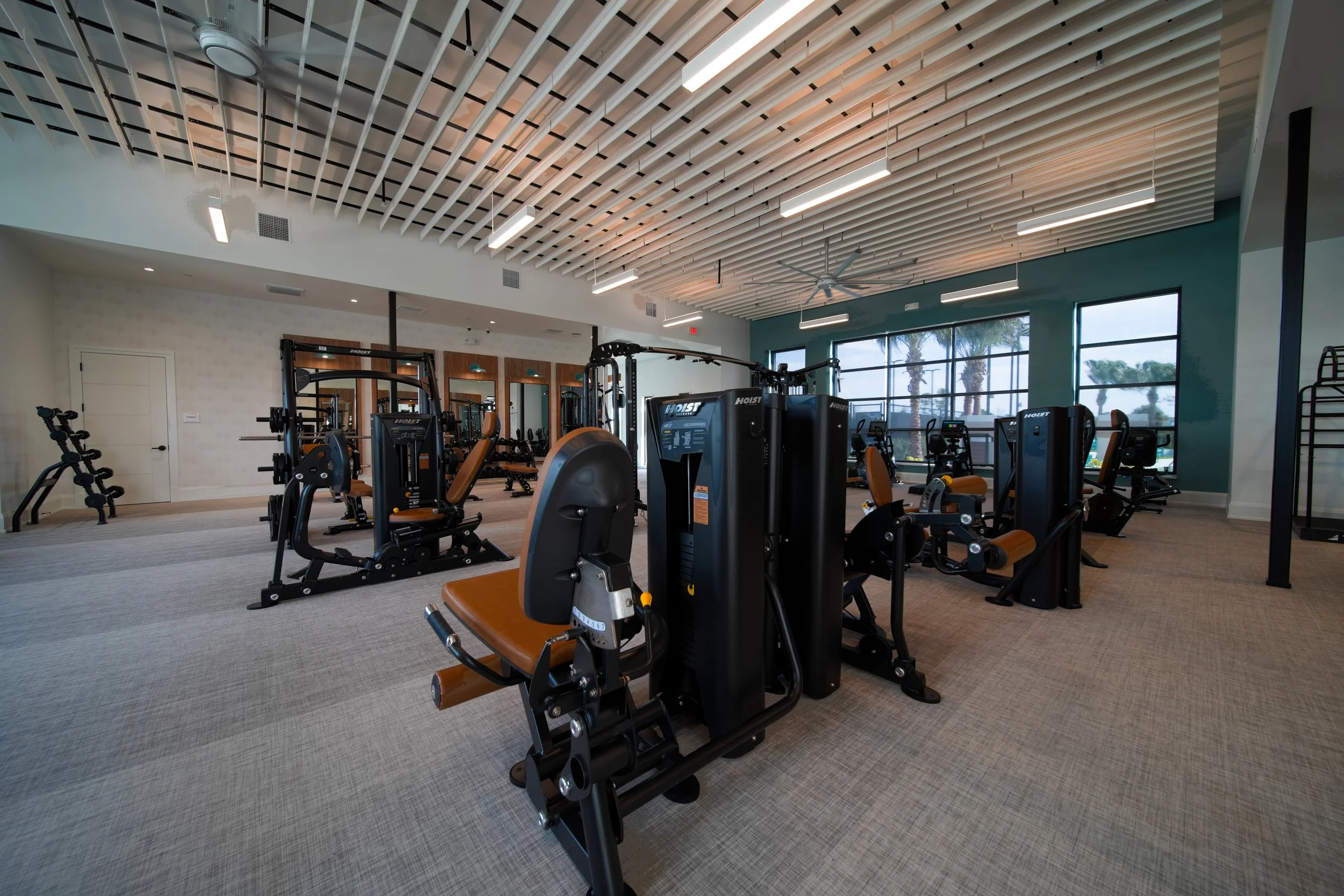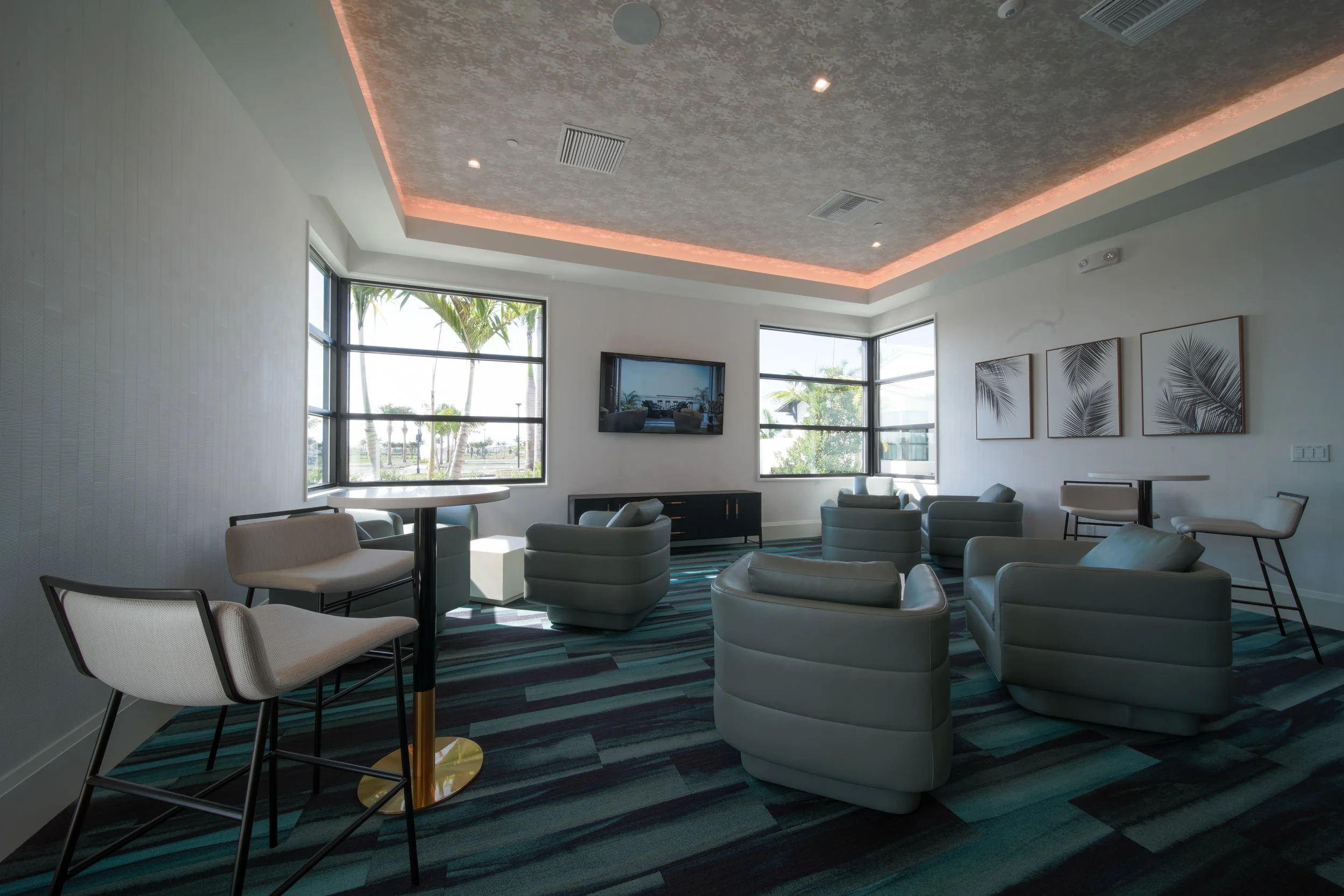 + Social: lobby and adjacent offices, grand hall, club room, restrooms, and coffee bar
